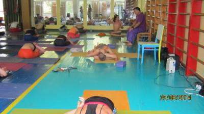 Большая удача попасть именно на такую практику - с комбинированными асанами и пранаямой. Это мощная, интенсивная практика с непредсказуемой последовательностью. И, хотя, не всем удавалось выдержать этот ритм и выполнить такие "крутые" асаны, каждый старался преодолеть себя, и продвинуться чуть-чуть дальше в своей личной практике и ощутить непередаваемые состояния сознания... Это ещё одна ступенька ВВЕРХ, к настоящей ЙОГЕ... Андрей, как всегда, покорил всех своим профессионализмом.